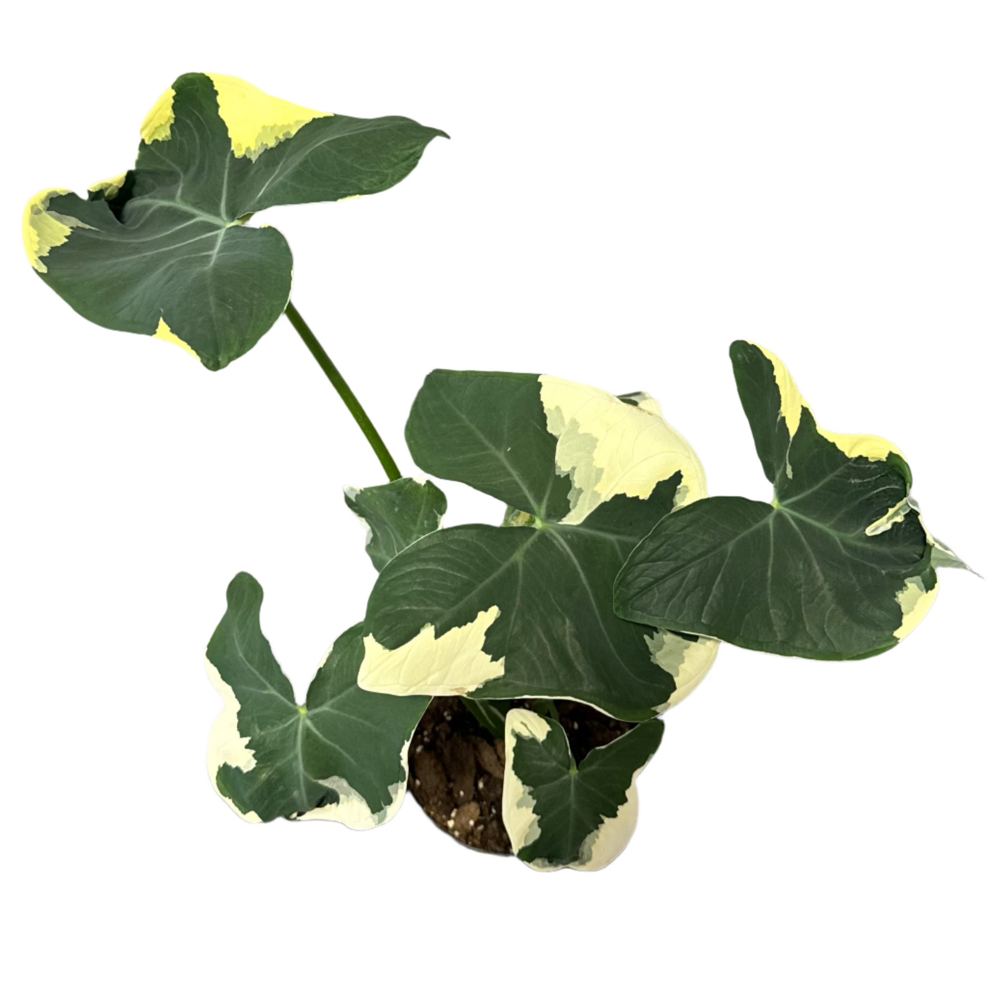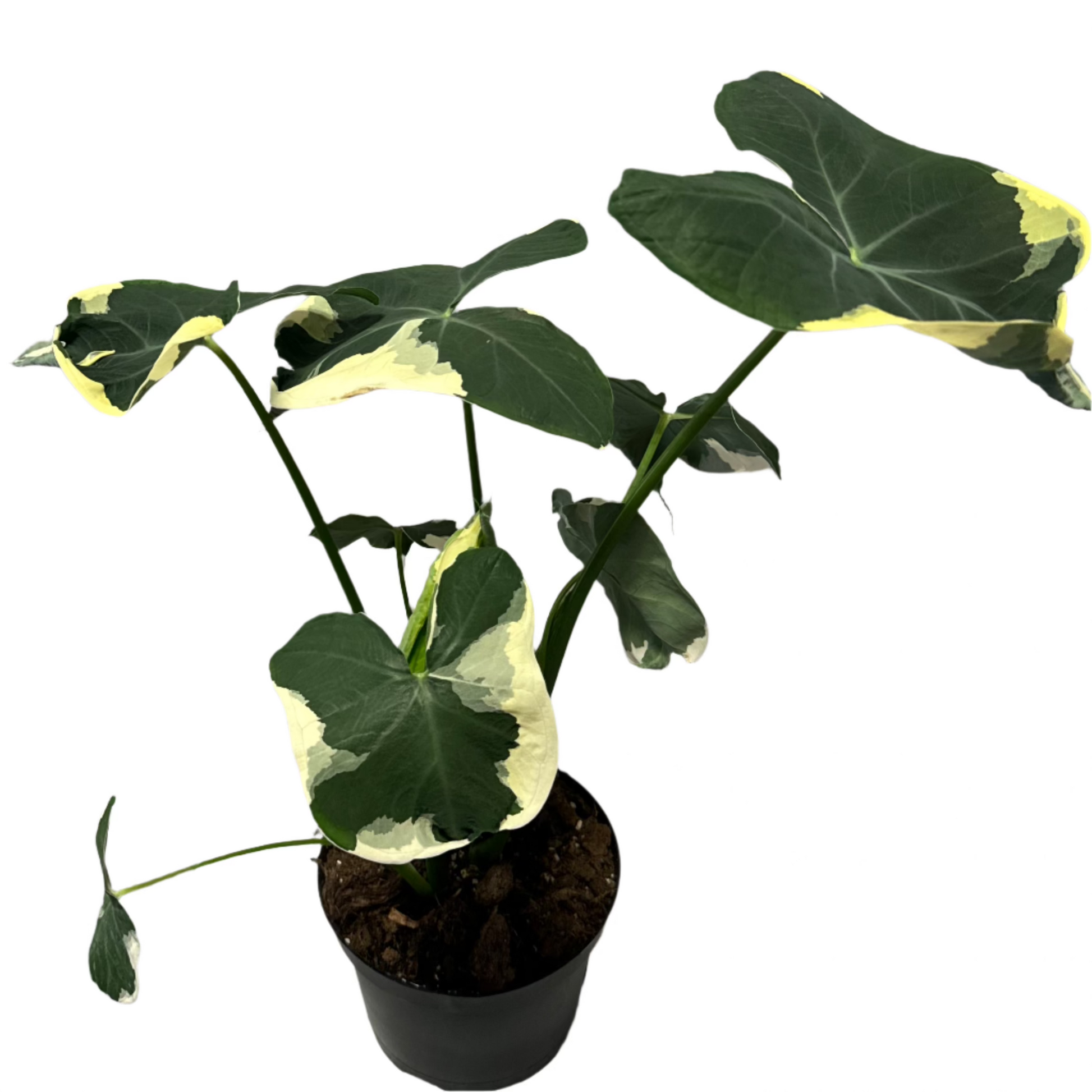The Alocasia Mickey Mouse, also known as Alocasia Odora Variegata, is a rare and unique variety prized for its distinctive, variegated leaves. The plant’s large, arrow-shaped leaves feature bold, irregular patterns of dark green and creamy white, resembling the iconic shape of Mickey Mouse ears. This eye-catching plant adds an exotic and playful touch to any indoor space, making it a favorite for plant collectors and those looking to add a whimsical yet elegant statement piece to their collection. Despite its exotic appearance, the Alocasia Mickey Mouse is relatively easy to care for when given the right conditions.