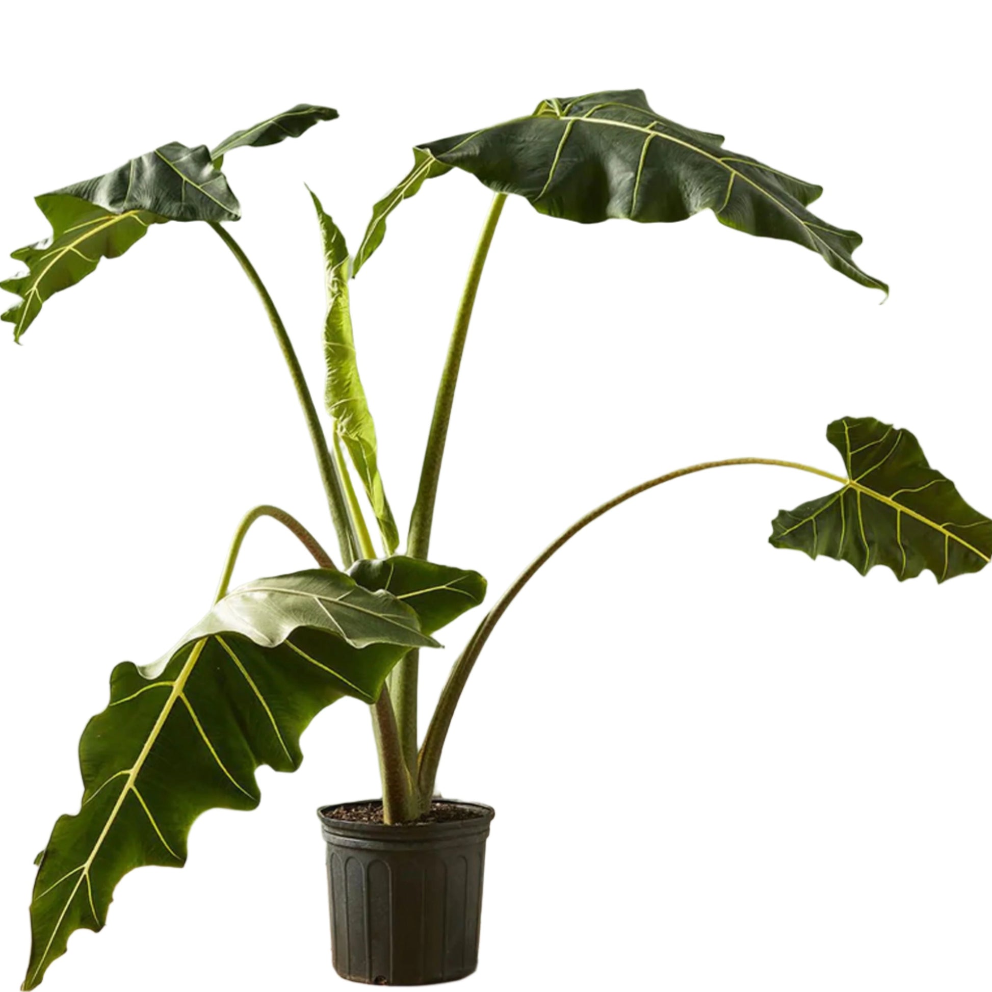 The Alocasia Sarian is a bold and striking tropical plant known for its large, glossy, arrow-shaped leaves with prominent white veins that run through the dark green foliage. This hybrid variety, named after its creator, Zac B. Sarian, is admired for its upright, architectural growth habit and dramatic appearance. The Sarian is perfect for making a statement in any indoor space, combining elegance with a touch of exotic tropical flair.