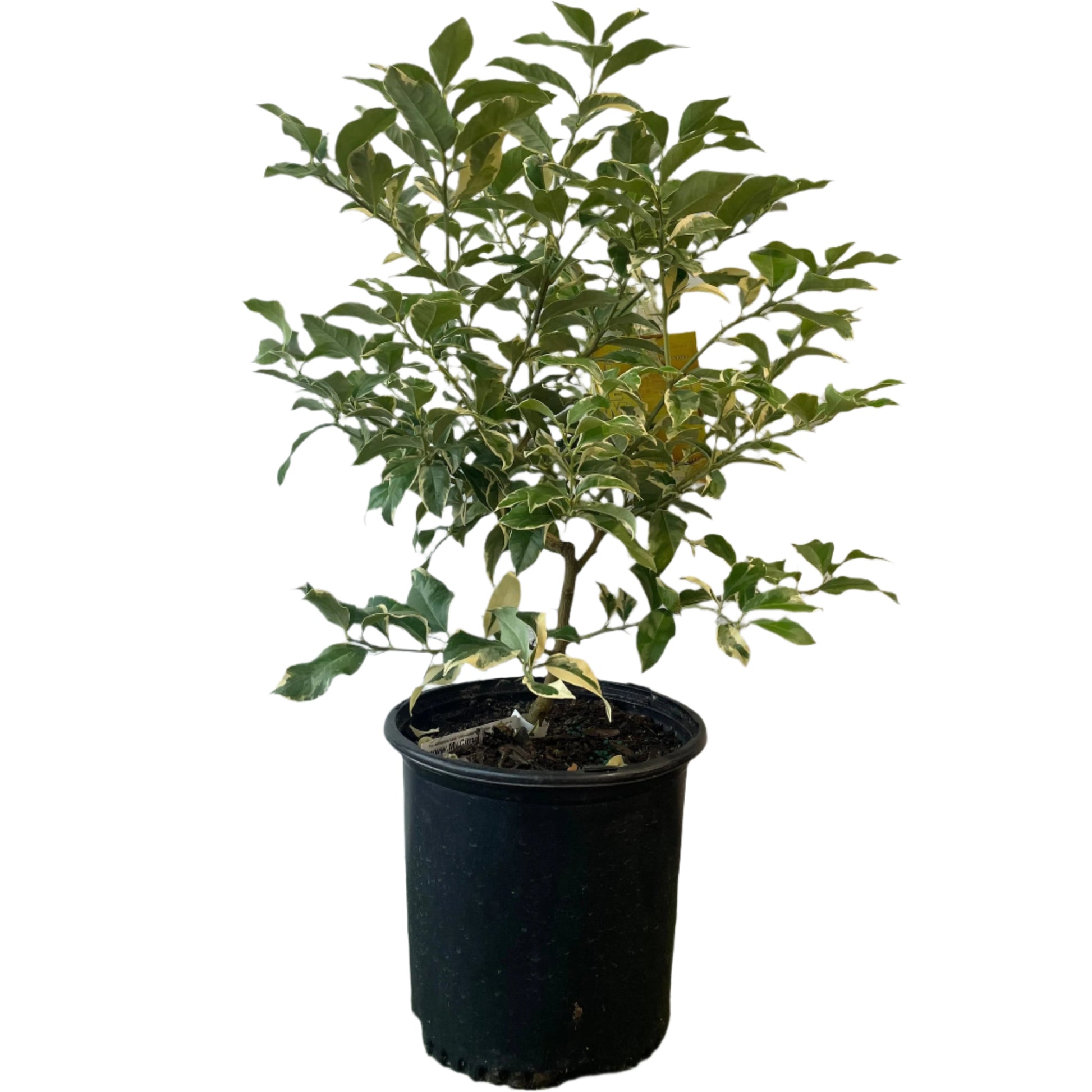 The Variegated Lemon Tree (Citrus limon ‘Variegata’) is a striking and productive citrus plant known for its creamy-edged, variegated leaves and beautifully striped fruit. Grown in a 10" pot, it’s an eye-catching addition to patios, sunrooms, or bright indoor spaces. With proper care, this dwarf citrus tree produces fragrant white blossoms and tangy lemons with pink-fleshed interiors—making it as functional as it is beautiful.