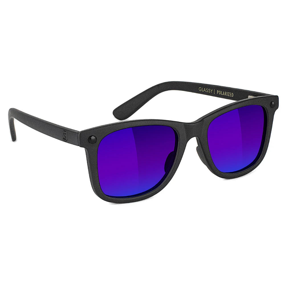 GLASSY MIKEMO PREMIUM POLARIZED SUNGLASSES (MATTE BLACKOUT/BLUE MIRROR)