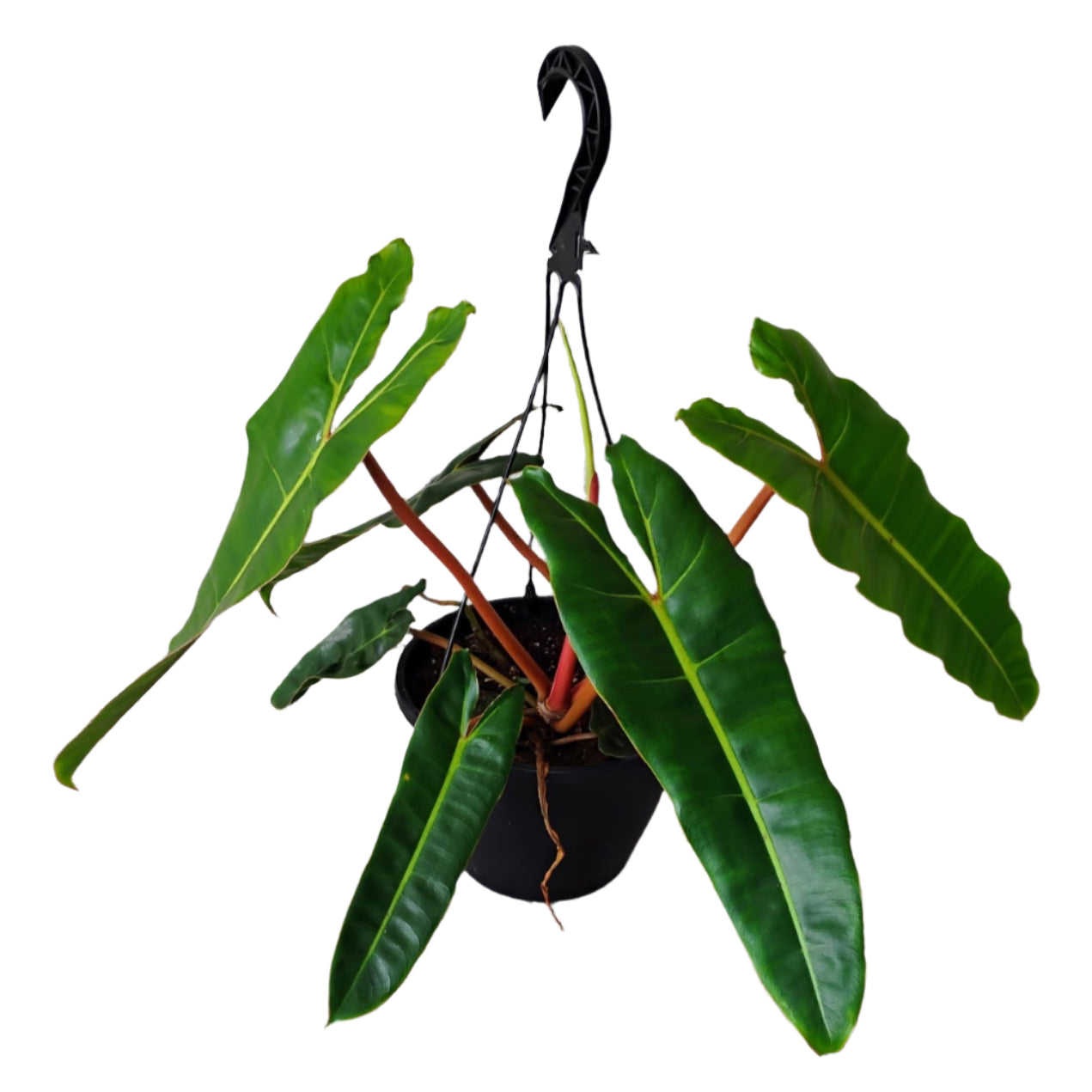 The Philodendron billietiae in a hanging basket format offers a rare twist on this already prized species. Known for its elongated, paddle-shaped leaves and standout bright orange petioles, this trailing or climbing aroid brings dramatic foliage and bold color contrast to your elevated plant displays. Grown in an 8" hanging basket, it’s perfect for suspending in bright, humid spaces where its cascading or climbing growth can be fully appreciated.