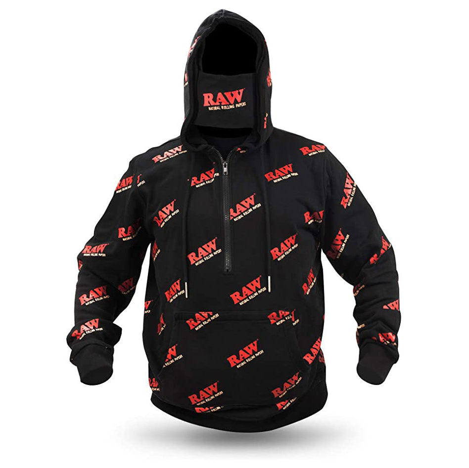 This premium hooded sweatshirt was designed for smokers and comes with plenty of features that prove why. Some features on the RAWLERS hoodie include the zipper stash pockets in the cuffs of the sleeves, metal tipped draw strings that can double as packing pokers and a one of kind velcro rolling tray pouch on the front, which folds out and features a coated surface inside for easy rolling. For these trying times this awesome hoodie even features a velcro face mask so you never have to worry about leaving yours at home again!