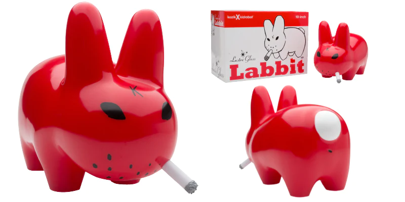 Sooo shiny. Slick, sleek, and smorkin’ hot, this 10-inch luscious Labbit is a super smooth version of Frank Kozik's beloved chain smoker. Adorned with a matte cigarette and gloss coating (for improved aerodynamic action), the Smorkin’ Glossy Labbit is truly the look of the future.