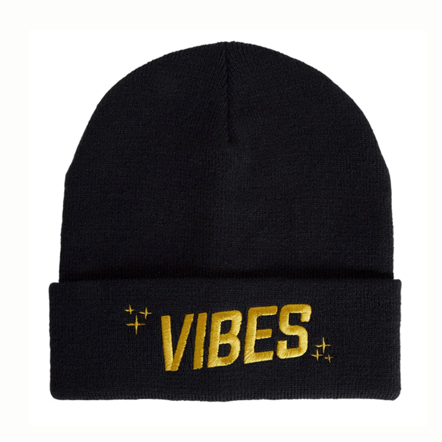 The Vibes™ Beanie sports a classic fold-over style and cozy fit. Supremely soft and comfortable, the beanie is embroidered with the golden Vibes logo and starry seal.